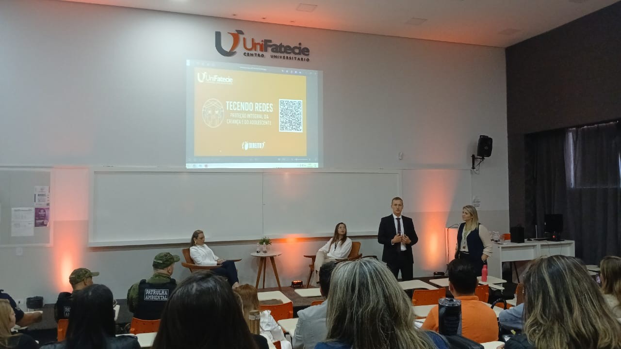 O anfiteatro da UniFatecie em Paranavaí se tornou, nesta quinta-feira (26 de setembro de 2025), o palco de um importante debate sobre a Proteção Integral da Criança e do Adolescente. O evento, intitulado "Tecendo Redes", reuniu autoridades, especialistas e agentes de segurança para discutir e fortalecer a articulação da rede de proteção no município.